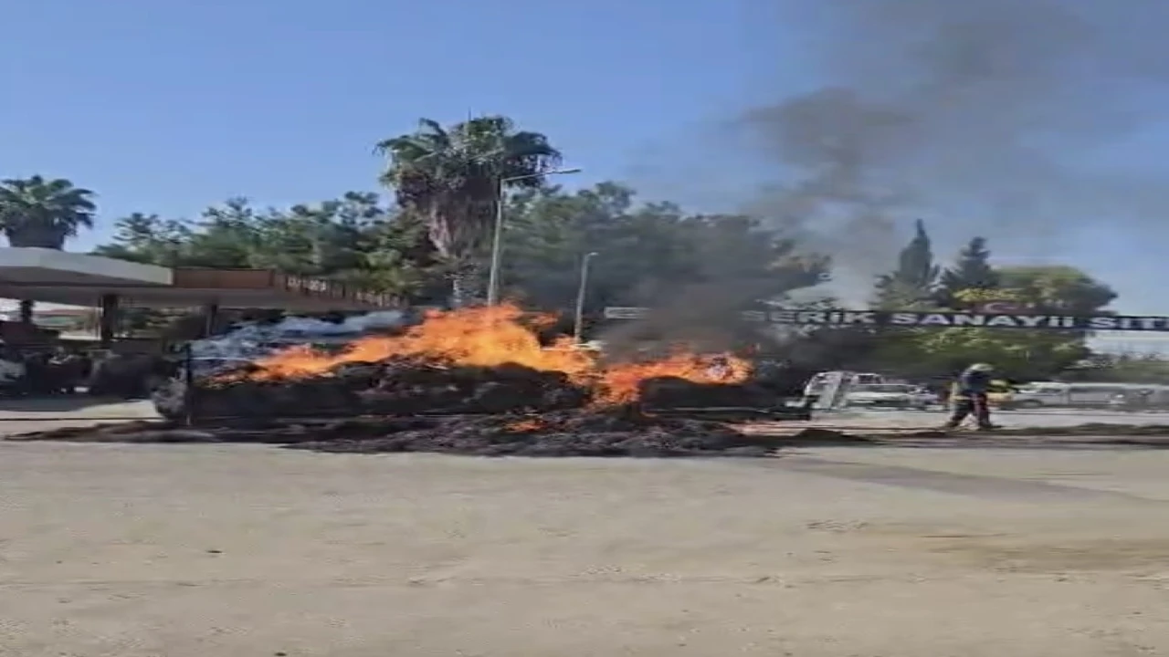 Olay, Akçaalan Mahallesi Sanayi mevkiinde meydana geldi. Edinilen bilgiye göre, H.D.’nin kullandığı traktörün üzerindeki saman balyaları birdenbire alev aldı. Alevlerin traktöre sıçramasını engellemek için büyük çaba gösteren sürücü, römorku hızla traktörden ayırmayı başardı. Çevredeki vatandaşların ihbar üzerine olay yerine itfaiye ekipleri sevk edildi. Ekiplerin müdahalesiyle yangın söndürülürken, saman balyaları tamamen yandı.