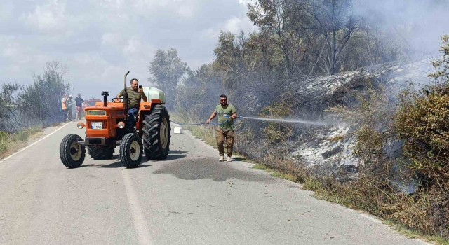 Yol kenarına atılan sigaradan çıkmış olabileceği belirtilen yangında yangın bölgesinde çok sayıda sera bulunması nedeniyle yangın söndürme ekipleri bir taraftan yangını kontrol altına almaya çalışırken bir taraftan da alevlerin seralara ulaşmaması için çaba harcadı. Yangında içerisinde 3 sebze serası, çok sayıda zeytin ve nar ağacının da bulunduğu 6 dönüm alan zarar gördü.