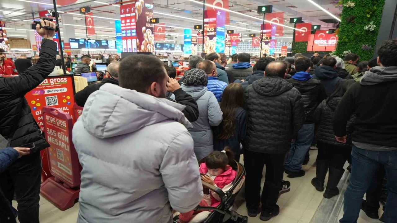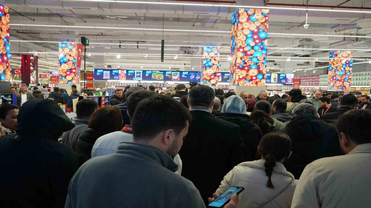 Teknoloji ürünlerindeki indirimlerin yanı sıra açılışa özel olarak 2 bin kişiye 1000 TL’lik hediye çeki verileceğinin duyurulması yoğunluğu daha da artırdı. Gece yarısından itibaren market önünde oluşan ve kilometreyi aşan kuyruklar kameralara yansıdı. Vatandaşlar, uzun bekleyişin ardından hediye çeklerini aldıktan sonra markete akın etti. Kurdele kesiminin ardından açılan mağazada oluşan kalabalık, zaman zaman izdihama neden oldu.
