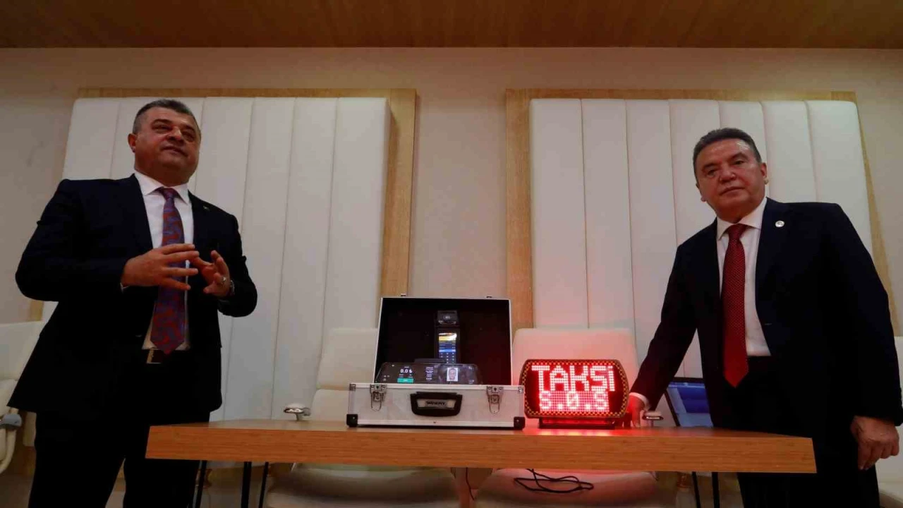 KONUYLA İLGİLİ BASIN AÇIKLAMASI YAPAN ANTALYA BÜYÜKŞEHİR BELEDİYE BAŞKANI MUHİTTİN BÖCEK VE ANTALYA ŞOFÖRLER VE OTOMOBİLCİLER ODASI BAŞKANI MEHMET ALİ ALKAN SİSTEMİN İŞLEYİŞİ HAKKINDA BİLGİ VERDİ.