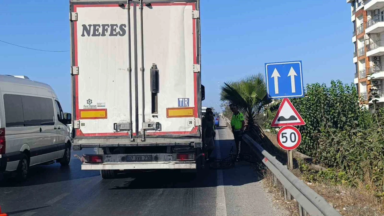 Kaza, dün Alanya-Antalya D-400 Karayolu Manavgat Çevreyolu üzerinde meydana geldi. Alanya istikametinden Antalya istikametine seyir halindeki Tufan Kandaş’ın kullandığı 07 CBA 679 plakalı, 07 BVB 230 dorse plakalı tır, Manavgat Çevreyolu Köprüsüne yaklaşık 100 metre mesafede emniyet şeridinde ilerleyen Emin Karabacak’ın kullandığı bisiklete çarptı.