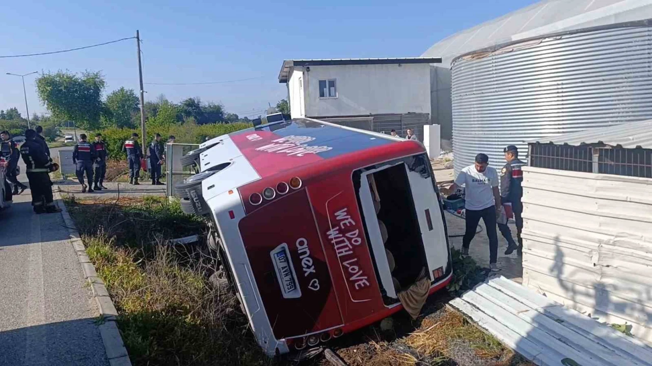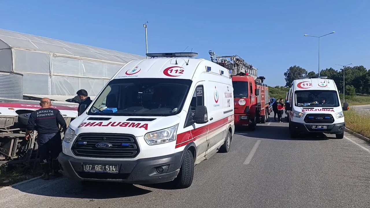 Kaza, Gündoğdu Mahallesi Yörük Mustafa Bey Bulvarı’nda sabah saatlerinde meydana geldi. Alınan bilgiye göre, havalimanından Rus turistleri alan 07 AVN 799 plakalı tur midibüsü, henüz ismi öğrenilemeyen sürücüsünün direksiyon hakimiyetini kaybetmesi sonucu muz serasının yanına yan devrildi. Kazayı görenlerin haber vermesi üzerine olay yerine çok sayıda ambulans, polis ve itfaiye ekibi sevk edildi.