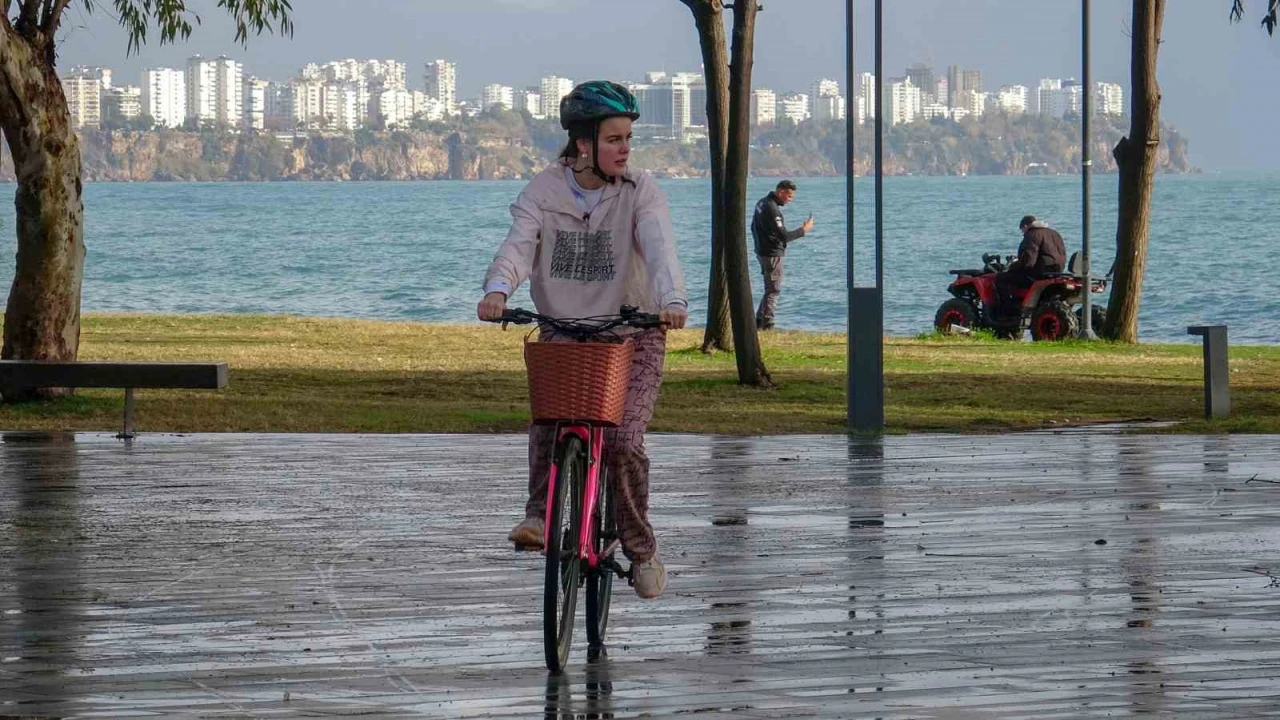 Meteoroloji Genel Müdürlüğü’nün 24 Aralık günü için ’turuncu kod’ ile uyardığı Antalya’da, sabah saatlerinde etkili olan sağanak yağmur öğleden sonra yerini güneşli havaya bıraktı. Konyaaltı Sahili’ne gelen vatandaşlar, yağışlı havanın ardından çıkan güneşin keyfini çıkardı.