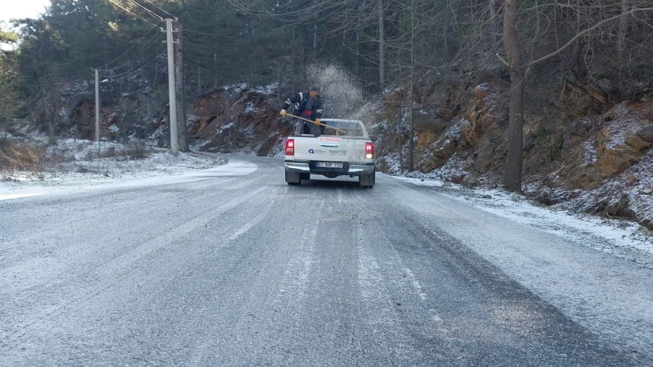 Antalya Büyükşehir Belediyesi, Alanya’nın kırsal bölgelerinde yolların trafiğe açık kalması için çalışma yapıyor. Büyükşehir ekipleri, yüksek kesimlerde tuzlama çalışması başlattı.