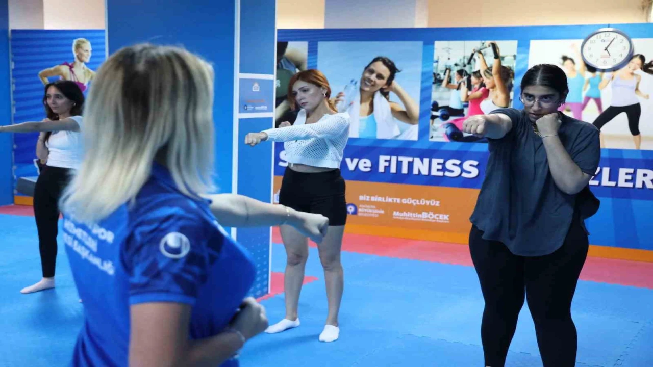ANTALYA BÜYÜKŞEHİR BELEDİYESİ’NİN KADINLARIN KENDİLERİNİ KORUMASI, ÖZGÜVEN KAZANMASI VE FİZİKSEL OLARAK GÜÇLENMESİNİ SAĞLAMAK AMACIYLA BAŞLATTIĞI "SAVUNMA SANATLARI EĞİTİMİ" KURSLARINA ANTALYALI KADINLAR YOĞUN İLGİ GÖSTERİYOR. KURSLAR, ÜCRETSİZ OLARAK ANTALYA SPOR VE FİTNESS MERKEZLERİ’NDE (ASFİM) VERİLİYOR.