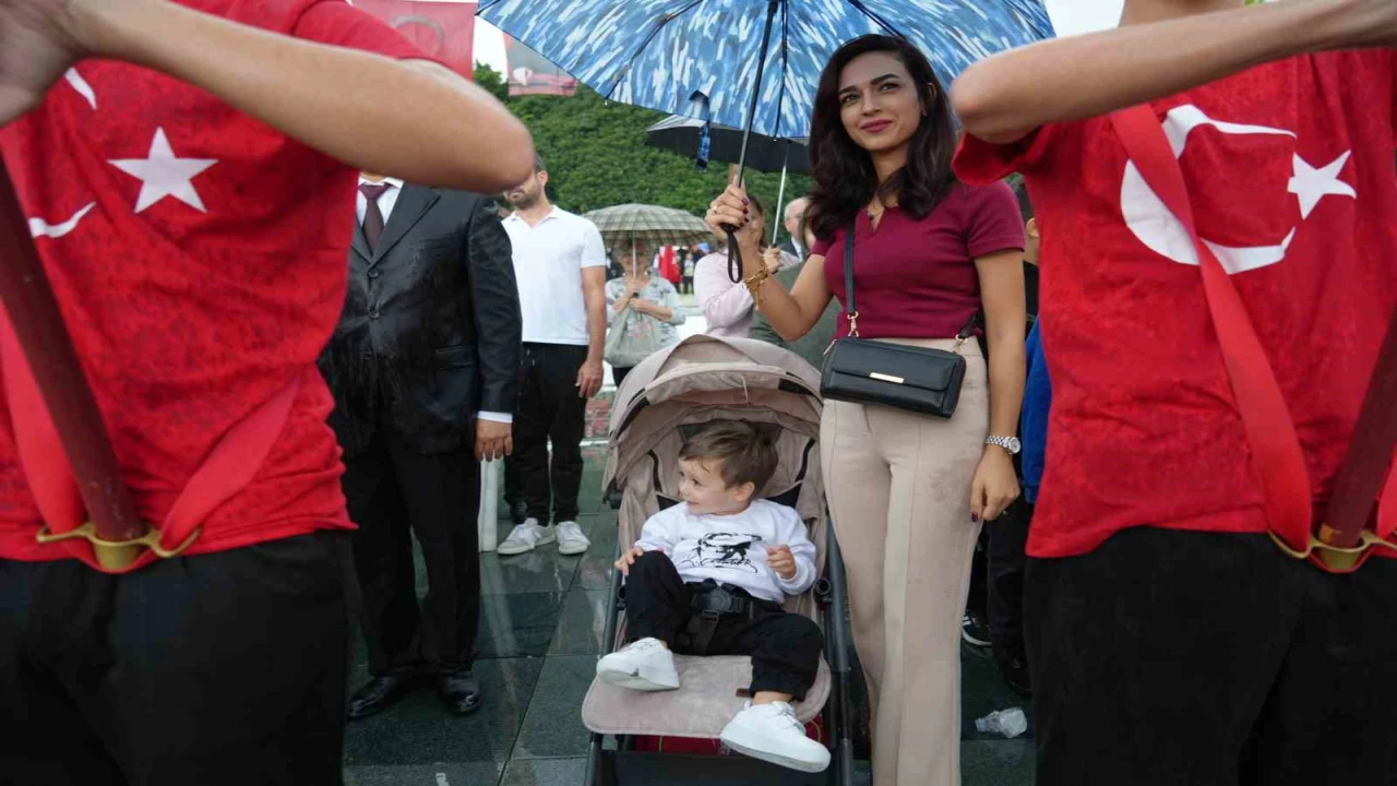 ANTALYA'DA DOLUYA DÖNEN SAĞANAK YAĞIŞA RAĞMEN PROTOKOL, ÖĞRENCİLER VE VATANDAŞLAR, CUMHURİYET MEYDANI'NI TERK ETMEDİ. PROTOKOL ÜYELERİ DE YAĞMUR BOYUNCA ŞEMSİYE KULLANMADI, TÖREN SAĞANAK YAĞMURUN ALTINDA TAMAMLANDI.