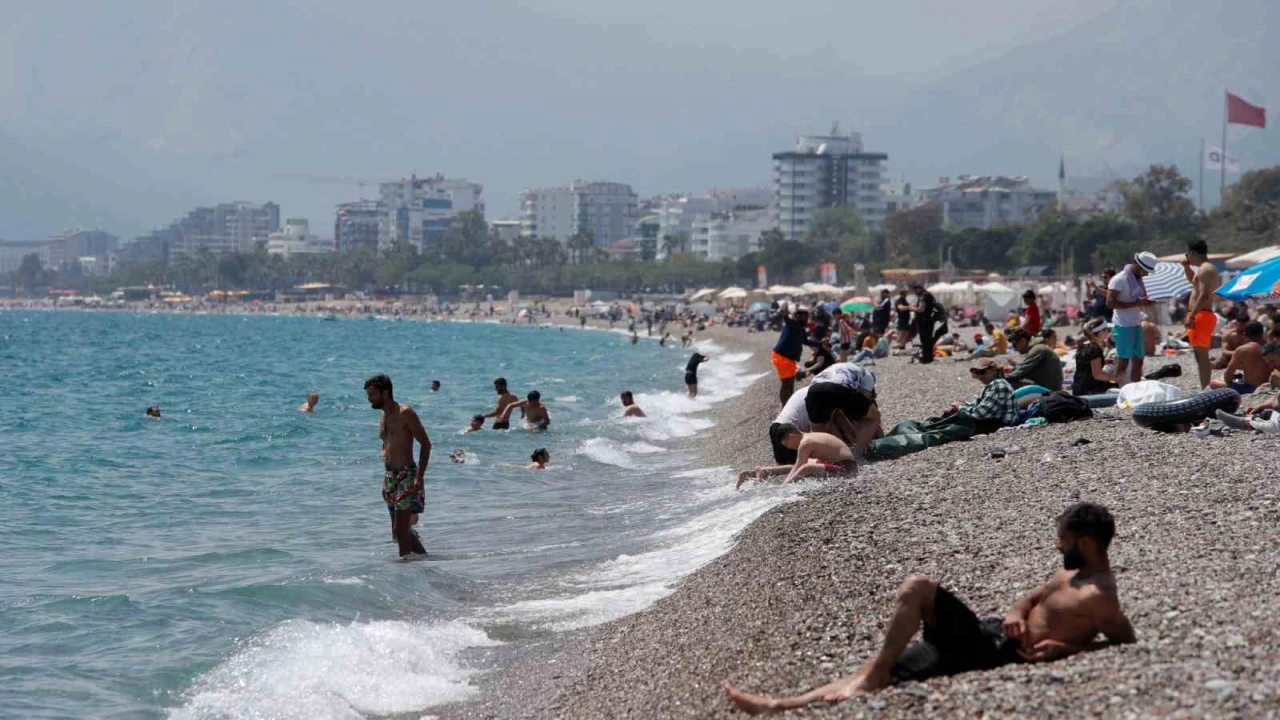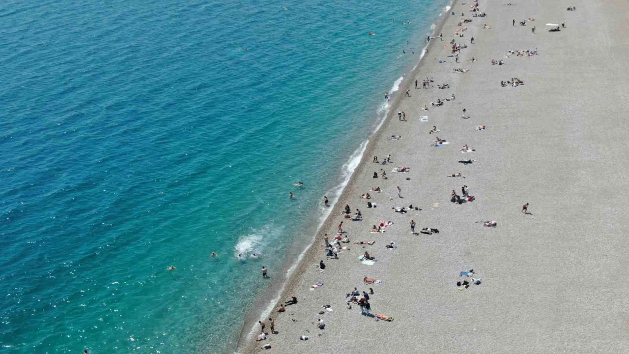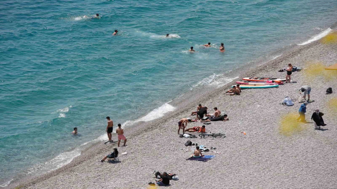 Antalya’da güneşli ve sıcak havayı fırsat bilen kent sakinleri ile yabancı konuklar hafta sonunu Konyaaltı Sahili’nde denize girerek ve sevdikleriyle geçirdi.