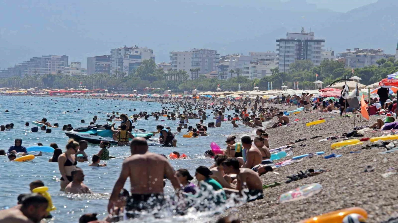 Antalya’da termometreler 45 dereceyi gösterdi, sıcak havadan bunalanlar kendilerini denize attı. Kentteki deniz suyu sıcaklığının da artış gösterip 32 dereceye kadar çıktı. Tatilciler, dışarıdaki kavurucu sıcaktan dolayı uzun süre denizden çıkmadı.