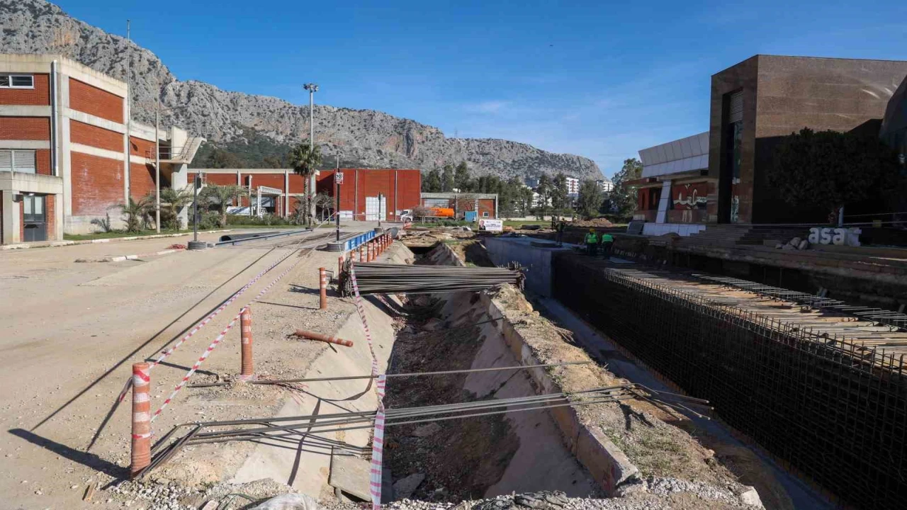 Antalya Büyükşehir Belediyesi, Antalya’nın en büyük arıtma tesisi olan Hurma Atıksu Arıtma Tesisinde, çalışmalar dahilinde 300 metre uzunluğundaki hatta bulunan 2 bin 500’lük FKS boru yerine, beton kutu menfez yapılacak.