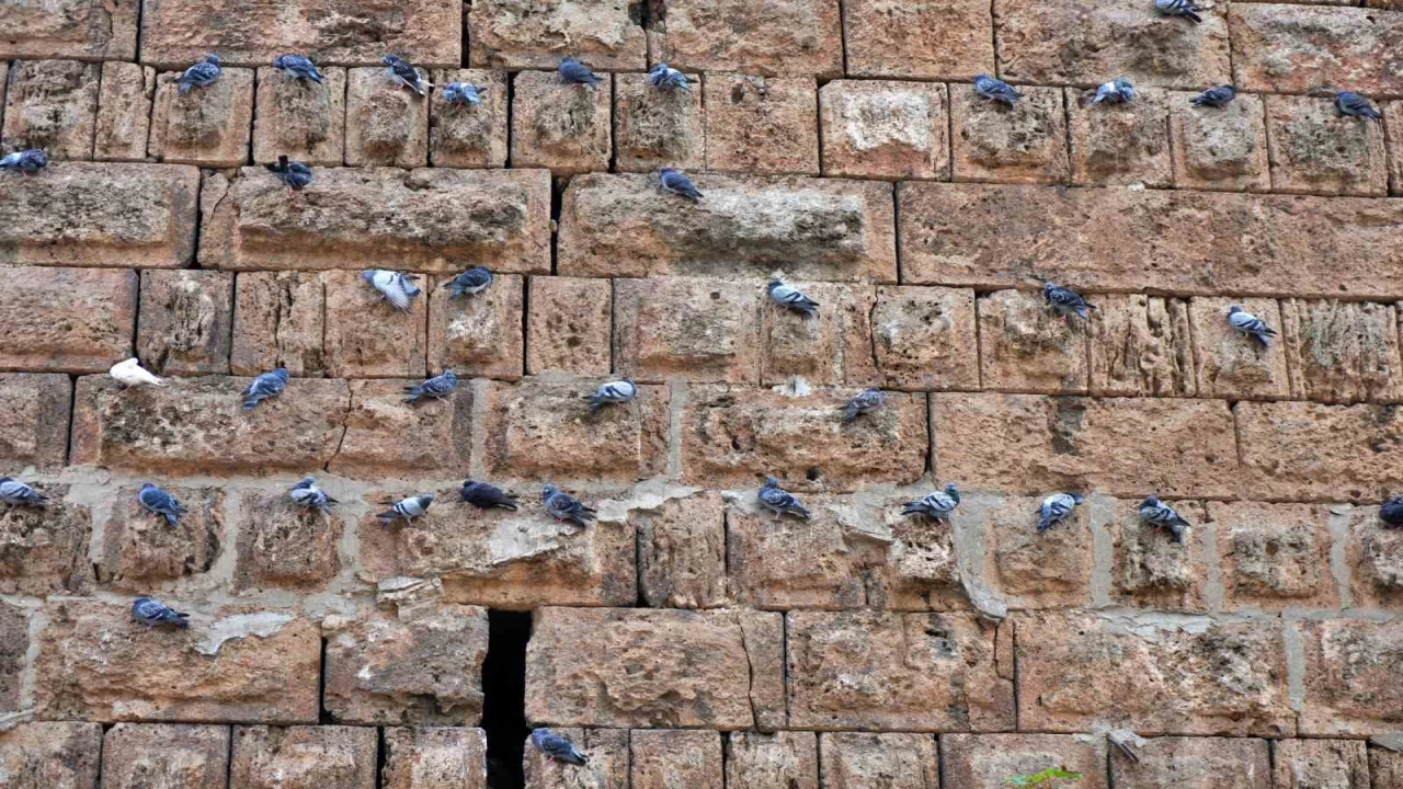HADRİANUS KAPISININ TARİHİ SURLARI, DOKUSUYLA OLDUĞU KADAR EV SAHİPLİĞİ YAPTIĞI GÜVERCİNLERİYLE DE İLGİ ÇEKİYOR.