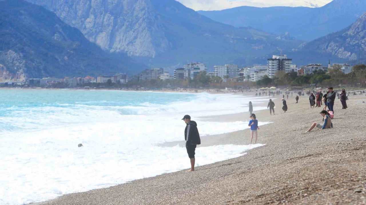 Antalya’da mart ayının sonu olmasına rağmen yüksek kesimlerinde kar yağışı etkili olurken, dünyaca ünlü Konyaaltı Sahili’nde yabancı turistler ve vatandaşlar dalgalara rağmen denizin keyfini çıkardı.
