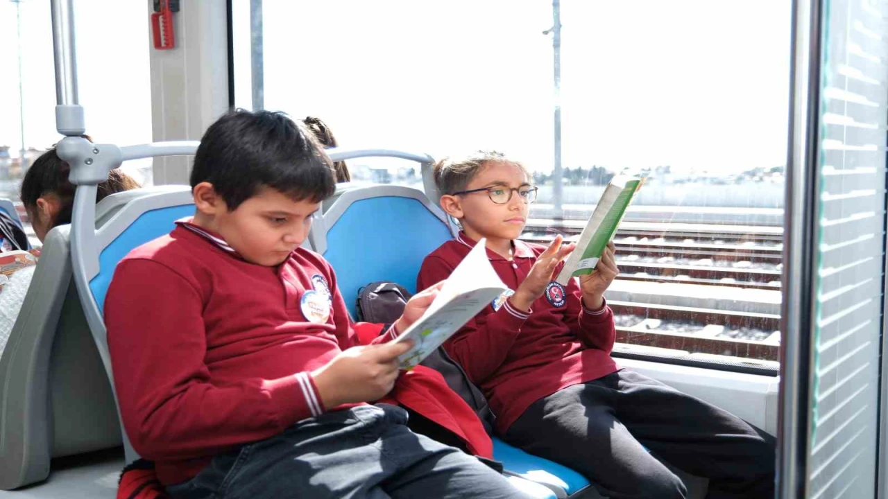 Eğitim programı dönüş yolunda öğrenciler, tramvay içerisinde kitap okuyarak toplu taşımada bilinçli yolculuğa dikkat çekti. Bu anlamlı etkinlik, öğrencilere eğitici bir deneyim sunarken toplumda farkındalık oluşturdu.