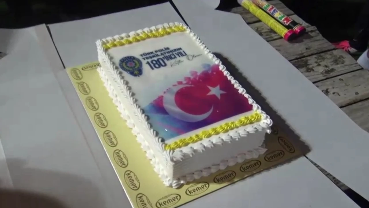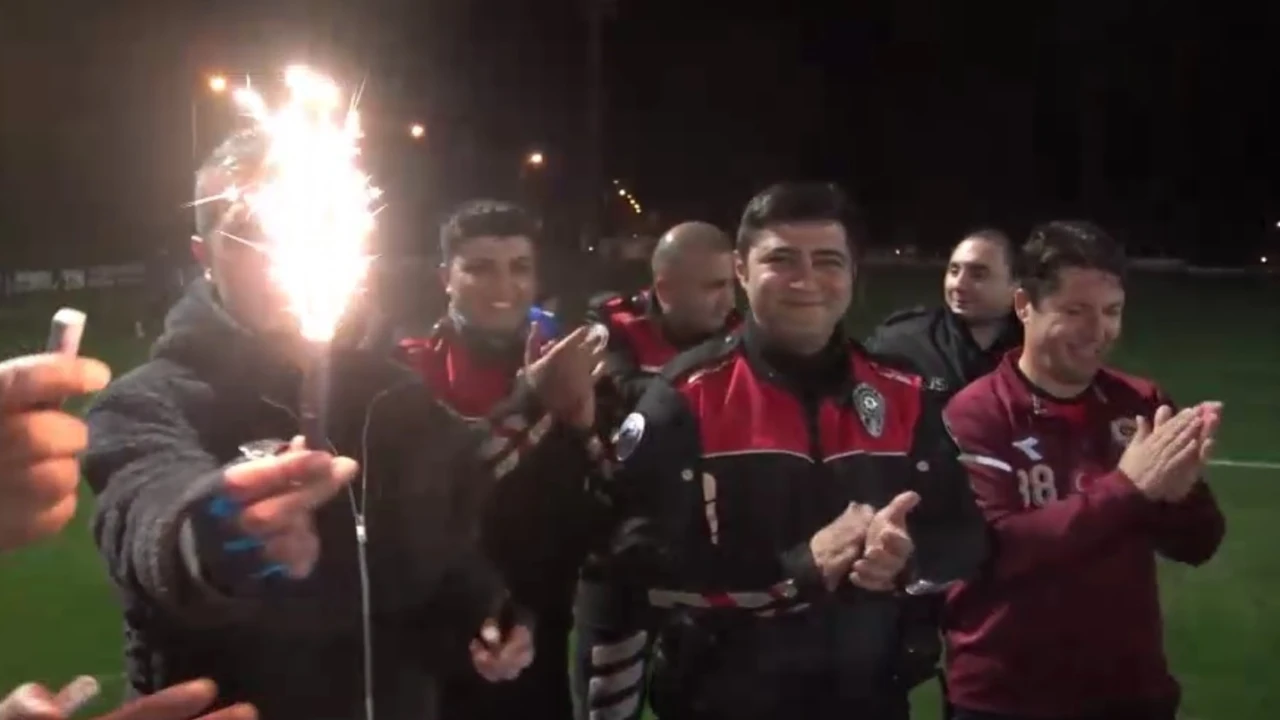 "ANTRENMANDA KAVGA VAR" İHBARINA GELEN POLİSLER, TÜRK POLİS TEŞKİLATI'NIN 180'İNCİ KURULUŞ YIL DÖNÜMÜ VE POLİS HAFTASI NEDENİYLE BAYRAKLI VE PASTALI SÜRPRİZ İLE KARŞILAŞTI