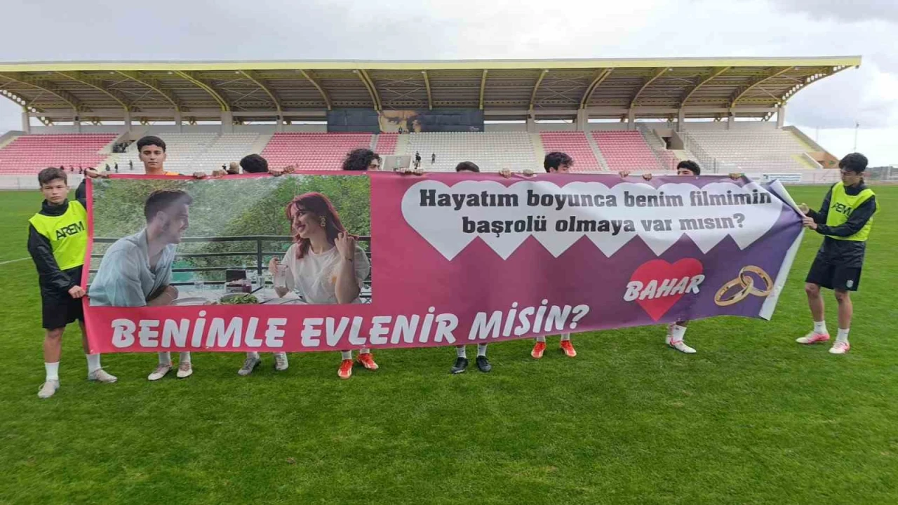 Futbolcular tribünlerin önünde galibiyeti taraftarlarıyla kutlarken, sahaya giren ve ellerindeki “Benimle Evlenir misin, hayatım boyunca benim filmimin başrolü olmaya var mısın BAHAR” yazılı pankart açan genç takım oyuncuları Bahar Tugay’a büyük şaşkınlık yaşattı. Kız arkadaşının önünde diz çöken Batuhan Vuruşkan elindeki yüzüğü Bahar Tugay’a uzatarak ‘Benimle evlenir misin?’ dedi. Yaşadığı kısa süreli şaşkınlığın ardından Bahar Tugay avazı çıktığı kadar bağırıp ‘evet’ cevabı verdi. Taraftarlar önünde yaşanan evlilik teklifinin ardından çifti ilk kutlayanlar yakınları ve futbolcular oldu.