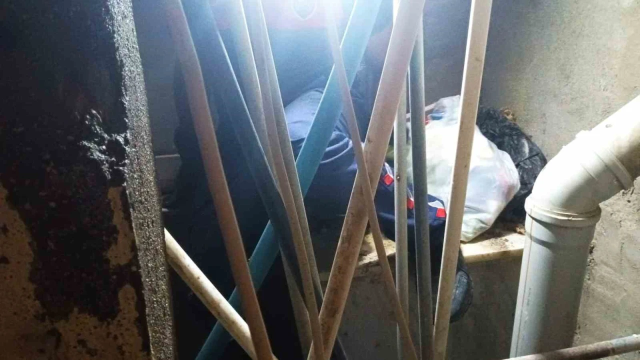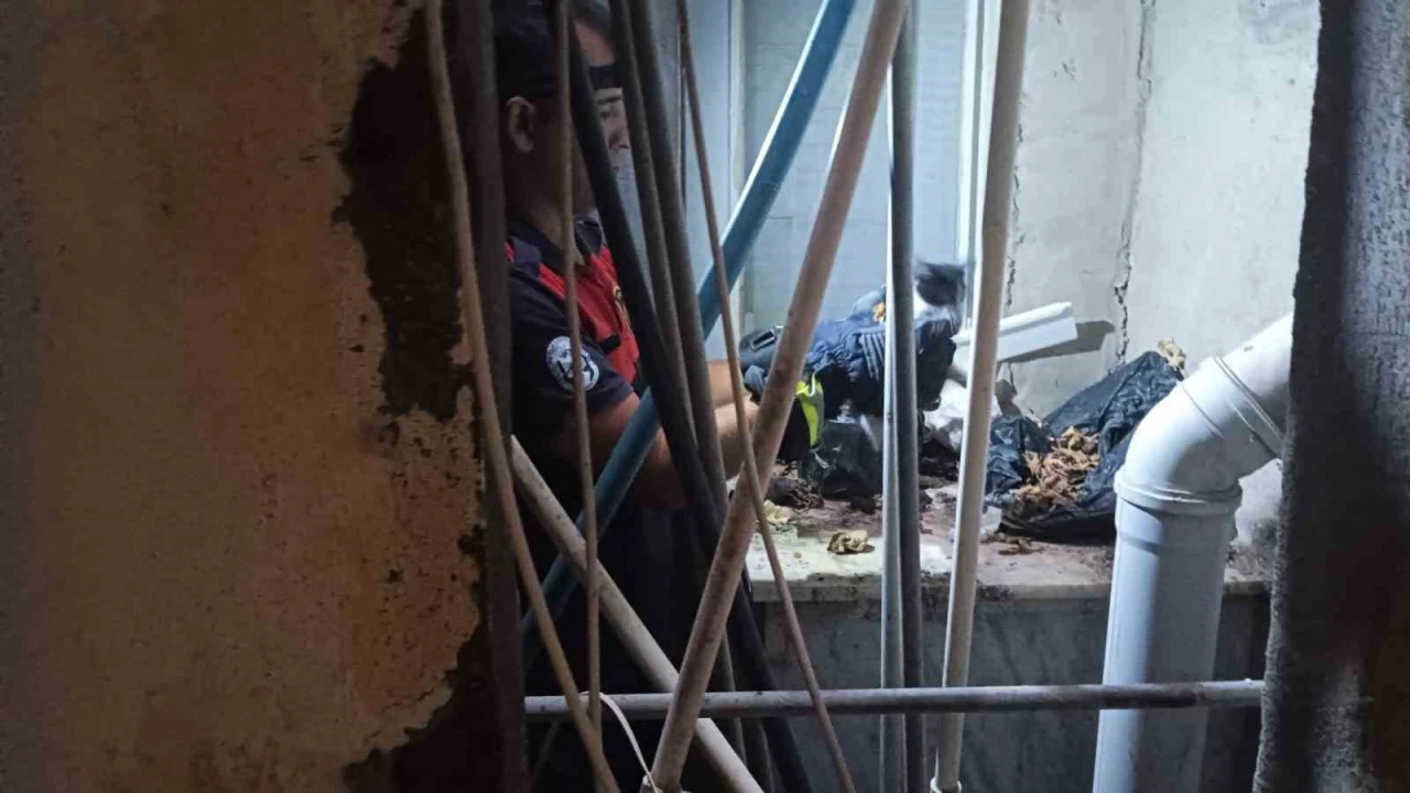 Apartman boşluğuna düşürek mahsur kalan yavru kediyi itfaiye ekipleri kurtardı
