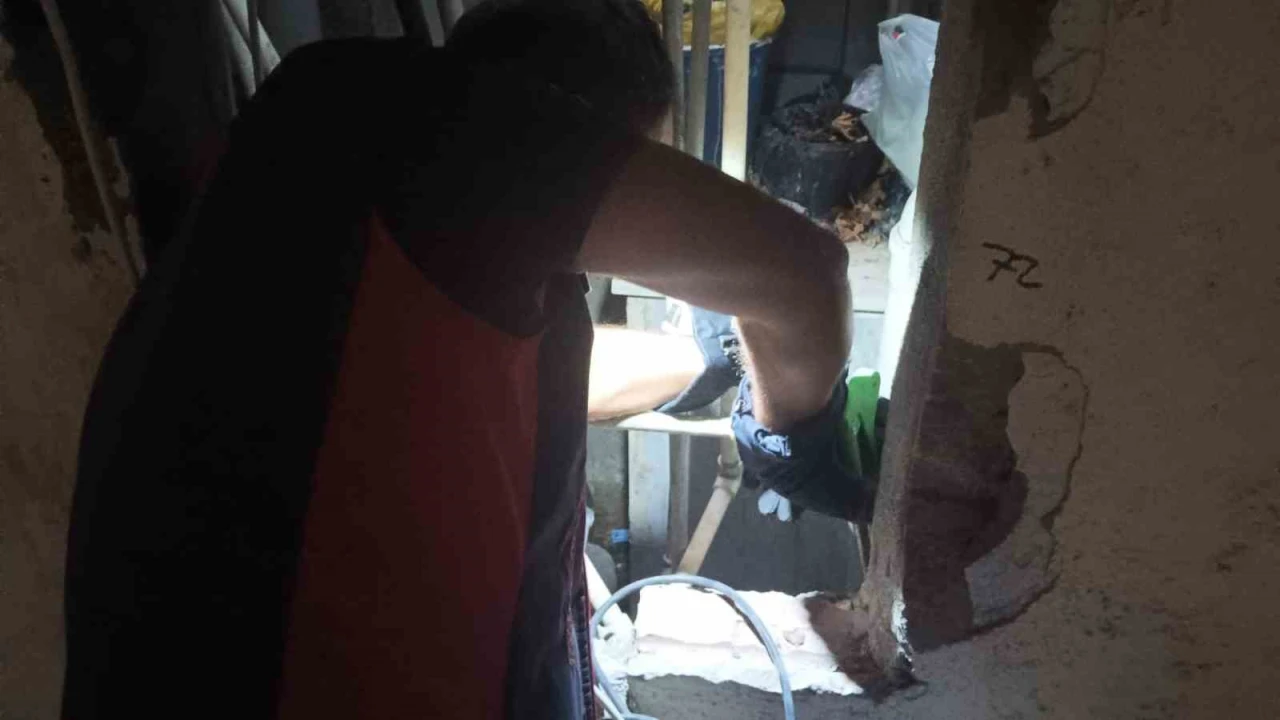 Samandağ ilçesi Kapısuyu Mahallesi'nde bir yavru kedi, apartman boşluğuna düştü.