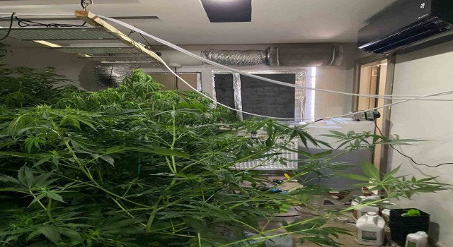 Adana İl Jandarma Komutanlığı apartmanlara uyuşturucu serası kuran 1 şüpheliyi gözaltı alırken, serada 50 kök Hint keneviri ele geçirdi.