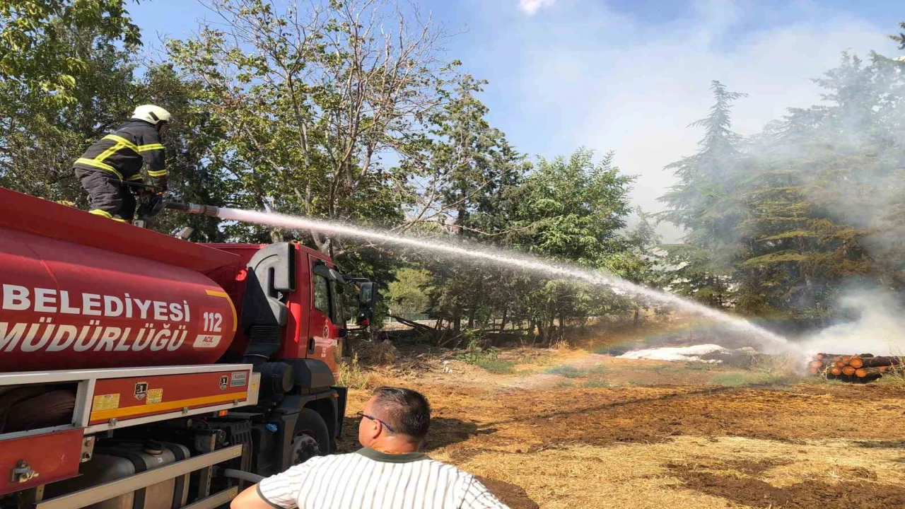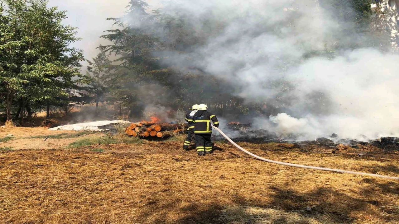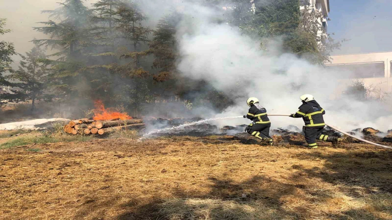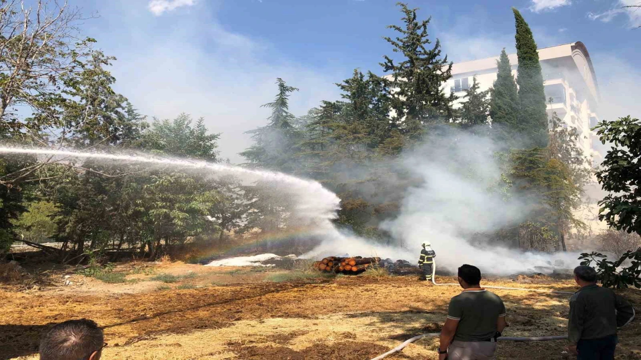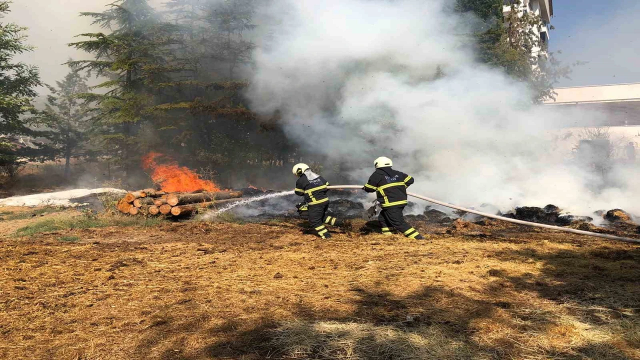 Burdur’un Bucak ilçesinde bir apartmanın bahçesinde çıkan yangında 30 balya saman ve keresteler yandı.