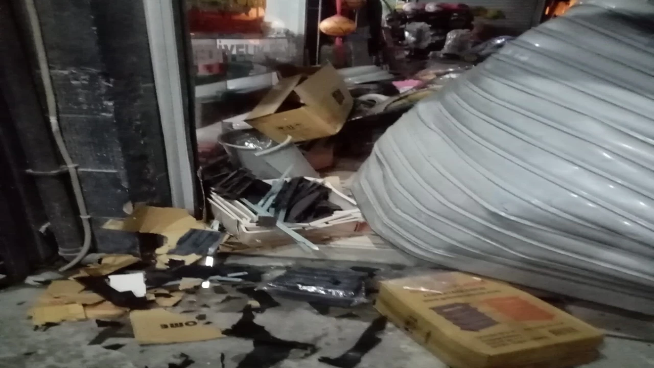 2 kişinin yaralandığı, iş yerinde yaklaşık 70 bin TL’lik maddi hasarın meydana geldiği kaza anı ise güvenlik kameralarına saniye saniye yansıdı.