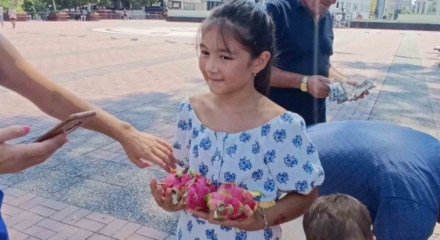 Yapılan konuşmaların ardından, kamyonetle getirilen Ejder Meyvesi Cumhuriyet Meydanı’nda vatandaşlara ücretsiz dağıtıldı. 2 bin civarındaki Ejder meyvesi vatandaşların yanı sıra yoldan geçen turistlerin yoğun ilgisiyle kısa sürede tükendi.