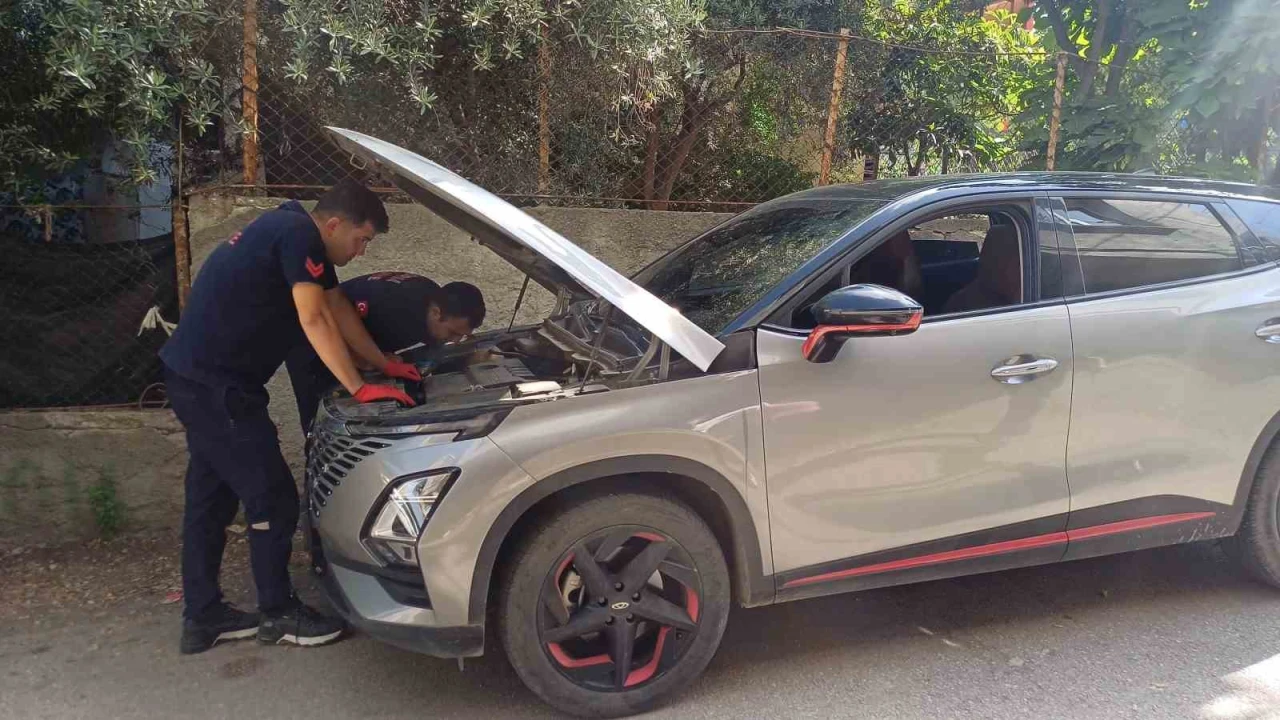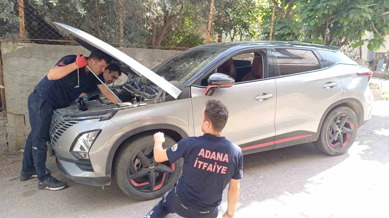 Adana’da bir otomobilin motor kısmına sıkışan yavru kedi, itfaiye ekiplerinin çalışmasıyla kurtarıldı.