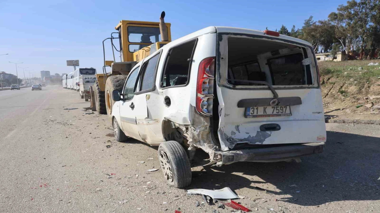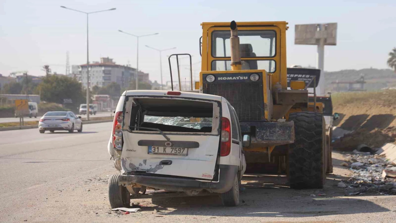 Hatay’da otomobil sürücüsü, önündeki aracı sağdan geçmeye çalışınca, 2 araca ve park halindeki iş makinesine çarptı.