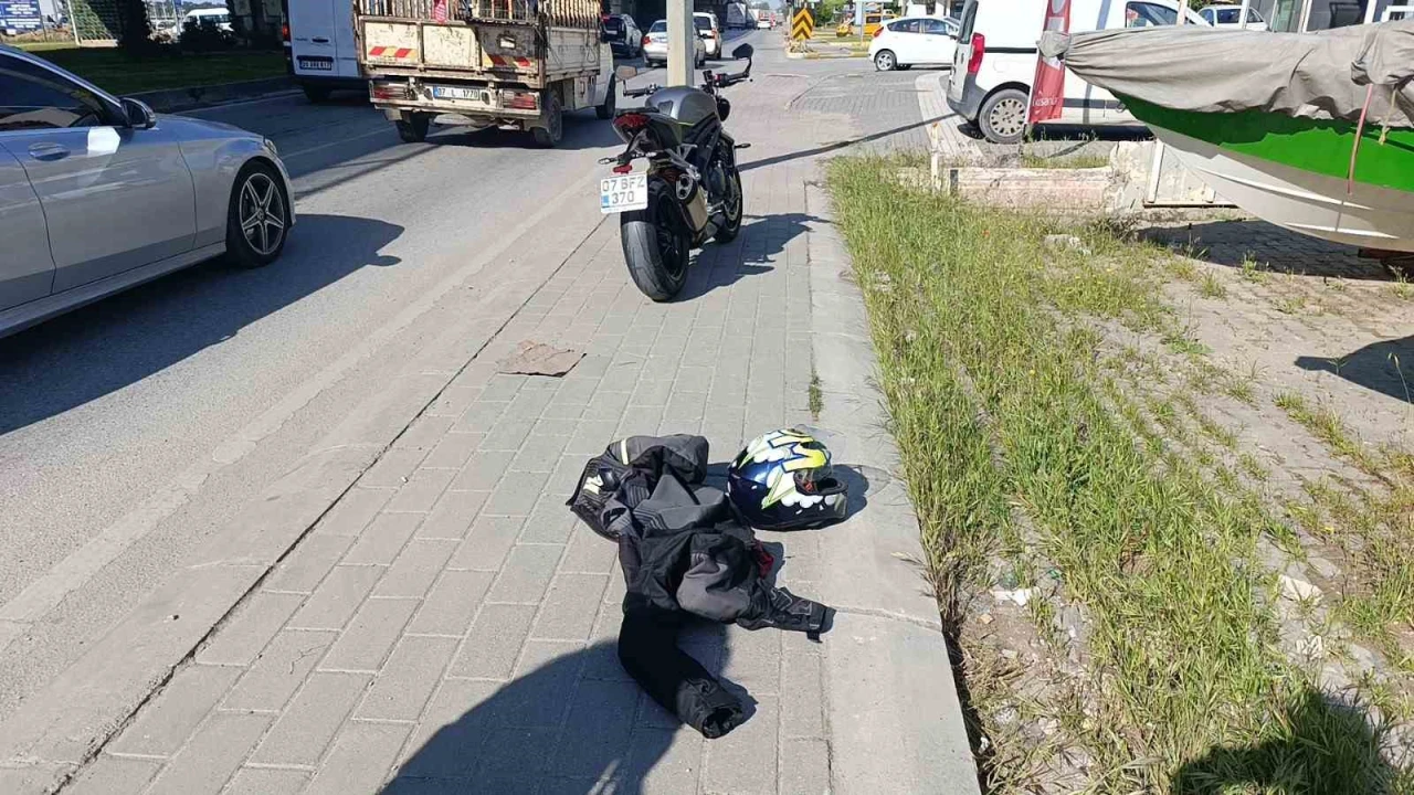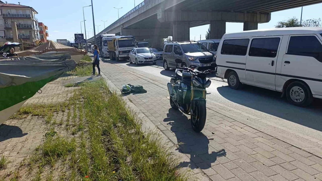 Antalya’da yolda kırmızı ışıkta bekleyen araçların arasından geçerek ilerleyen motosiklet yoldan yaya olarak geçmekte olan vatandaşa çarptı.