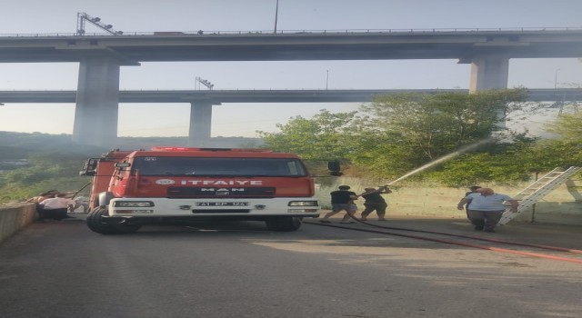 Kocaeli TEM Otoyolu’nda seyir halinde olan araç alev aldı. Yangın ağaçlık alana sıçrarken itfaiye ekipleri alevleri söndürdü. Yangın sebebiyle TEM Otoyolu’nda trafik durma noktasına geldi.