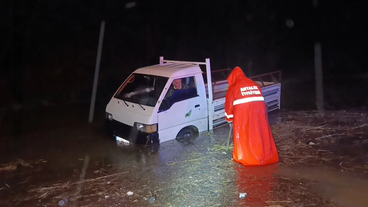 112 Acil çağrı Merkezine gelen ‘Ilıca Mahallesi Cezaevi yolunda aracıyla suda mahsur kalma’ ihbarı Antalya Büyükşehir Belediyesi İtfaiyesi Manavgat Birimi ve Manavgat İlçe Jandarma Komutanlığı Kumköy Jandarma Karakolu ekiplerini alarma geçirdi.