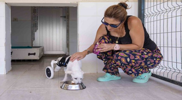 Mersin’de bir apartmanda bitkin halde bulunan ve arka ayaklarının bilekten alt kısmının kesildiği tespit edilen köpek, Büyükşehir Belediyesine ait Kaşlı Geçici Hayvan Bakımevi’nde sağlığına kavuşturuldu. Tedavisinin ardından hem fiziksel hem de psikolojik durumu düzelen ’Şirin’ isimli köpek, bir hayvansever tarafından bağışlanan yürüteç sayesinde yürümeye başladı.