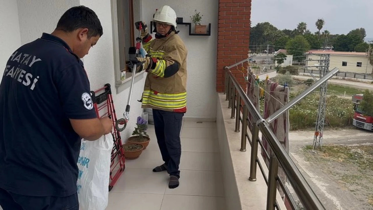 Hatay’da bir evin balkonunda görülen yılanı itfaiye ekipleri yakaladı.