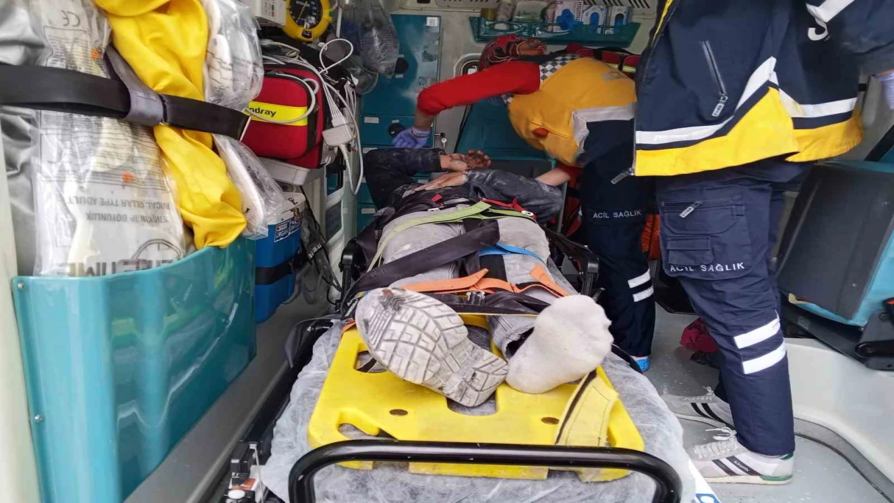 İtfaiye ekipleri tarafından kurtarılan yaralı işçi, olay yerindeki ilk müdahalenin ardından hastaneye sevk edildi.