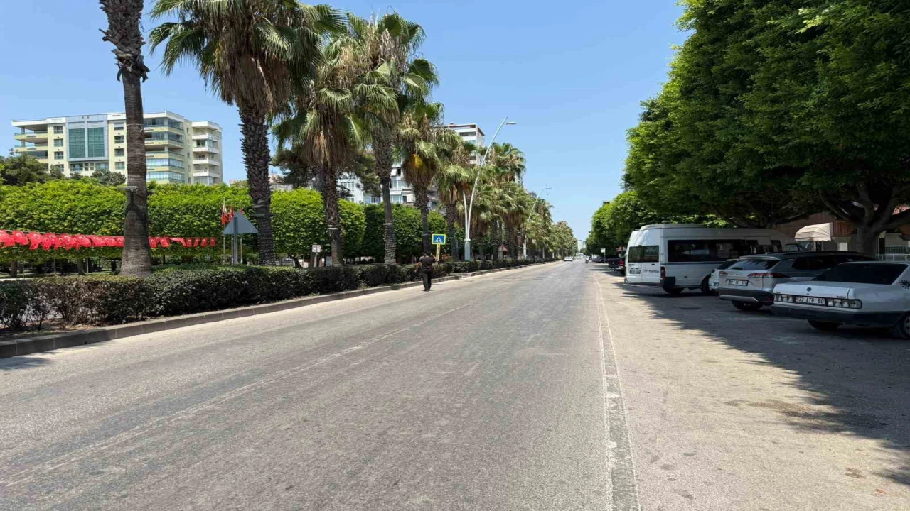 Nemle birlikte hissedilen sıcaklığın 42 derecelere çıktığı Adana’da kentin cadde ve sokakları boş kaldı.