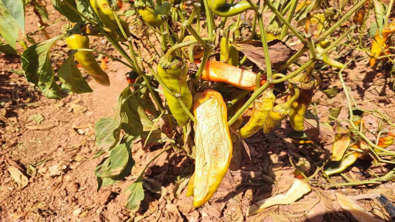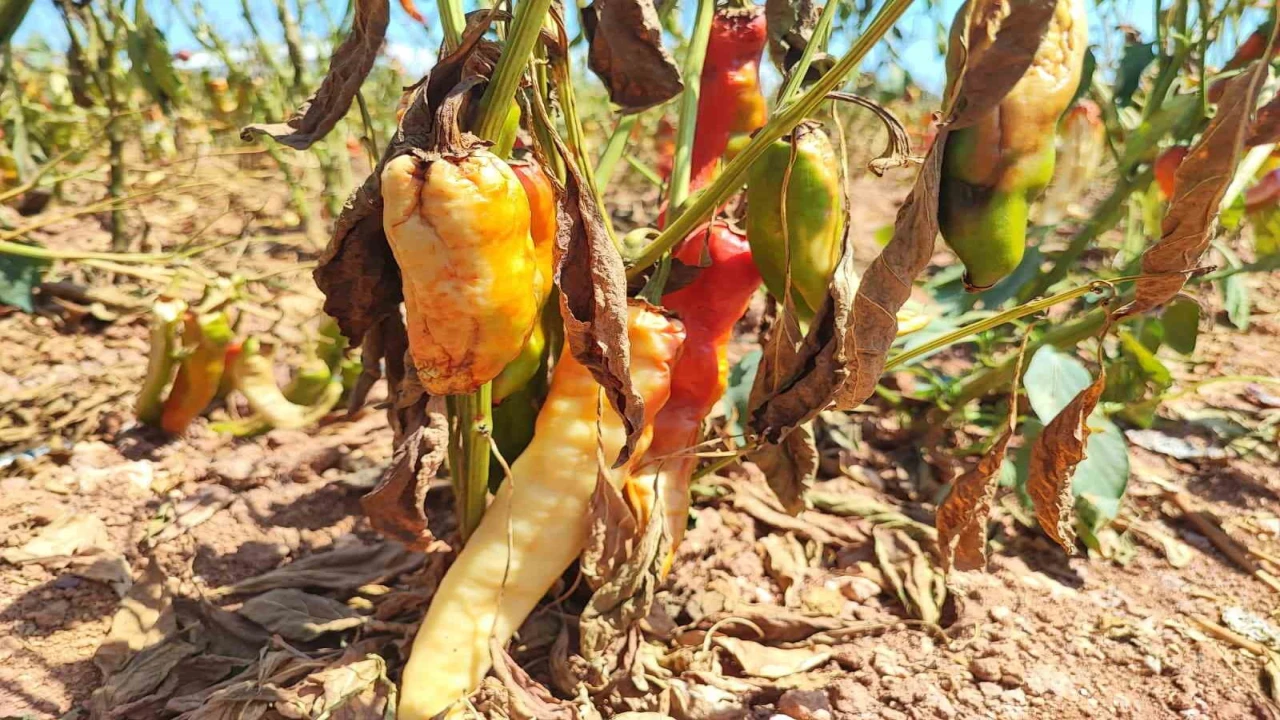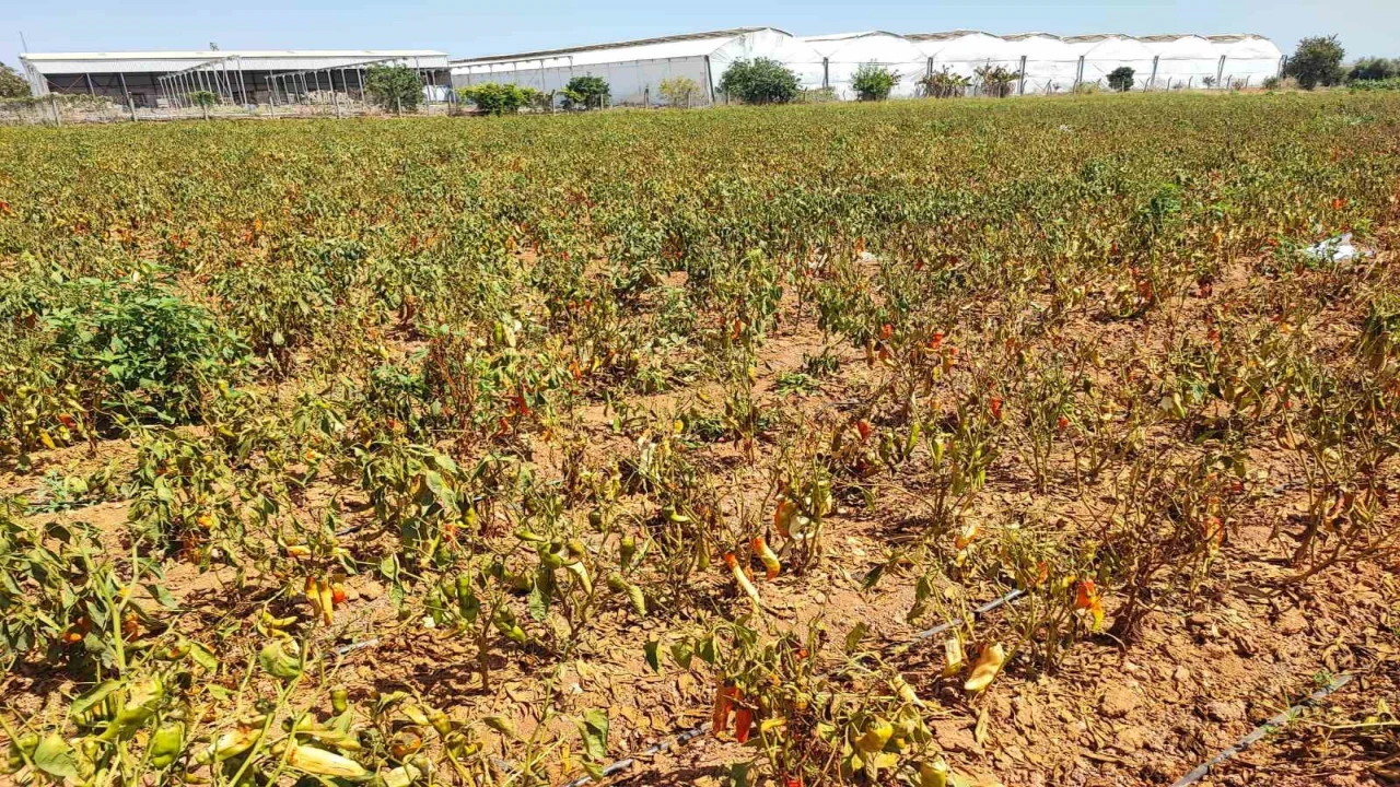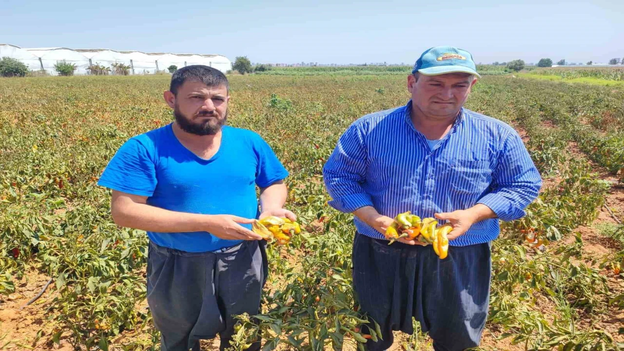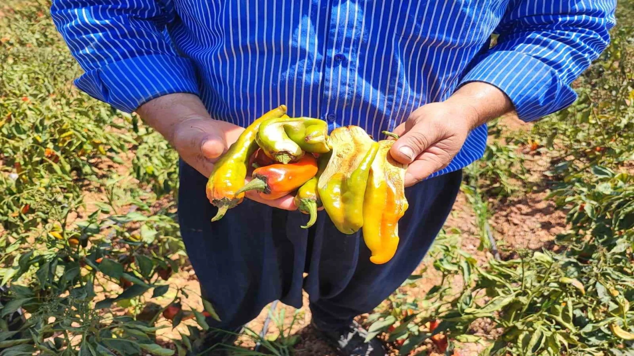 Biber üreticisi Hakim Özkan, "Trips denilen bir böcek biberleri istila etti. Hal böyle olunca zaten biberlerde sorun vardı bir de üstüne sıcaklar vurdu. 3 ton verim bekliyorduk ama şu an 500 kilogram anca verim alacağız" dedi.