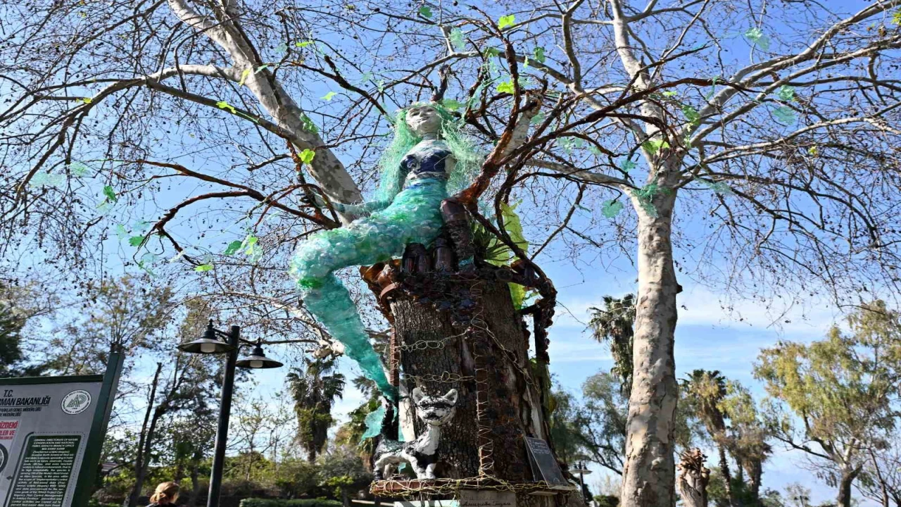 Eko-sanatçı olarak tanınan Güzel Amirova, ünlü Rus yazar ve şair Aleksandr Sergeyeviç Puşkin’in 1820’de yayımlanan Ruslan ve Ludmila şiirini, Manavoğlu Parkı’nda geri dönüşüm malzemelerinden yaptığı bir heykelle canlandırdı. Geri dönüştürülen malzemelerle yapılan denizkızı heykeli, fırtınada devrilen bir ağacın gövdesine yerleştirildi. Petersburg’da başladığı çalışmalarını 5 yıldır Antalya’da sürdüren Amirova, yaptığı çalışmalarla geri dönüşüm konusunda farkındalık oluşturmayı ve çevre bilinci oluşturmayı hedeflediğini söyledi. Parkta dolaşırken fırtınada devrilen bir ağacı gören Amirova, Puşkin’in dizelerindeki kompozisyonun zihninde canlandığını ve bunu hayata geçirmek için çalışmalara başladığını belirtti.