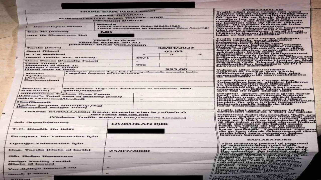 Olay, merkez Yenişehir ilçesine bağlı Gazi Mustafa Kemal (GMK) Bulvarı’nda 30 Nisan’da yaşandı. Gece saatlerinde GMK Bulvarı üzerinde atıyla markete gittiğini iddia eden 25 yaşındaki Durukan Işık, devriye görevi yapan polis ekipleri tarafından durduruldu. Yapılan kontrollerde alkollü olduğu belirlenen Işık’a, ‘alkollü araç kullanmaktan’ 9 bin 270 TL idari para cezası uygulandı. Ayrıca, ‘yerleşim yerleri dışındaki kara yollarında zorunlu haller dışında hayvan bulundurmak’ suçundan da 993 TL ceza kesildi.