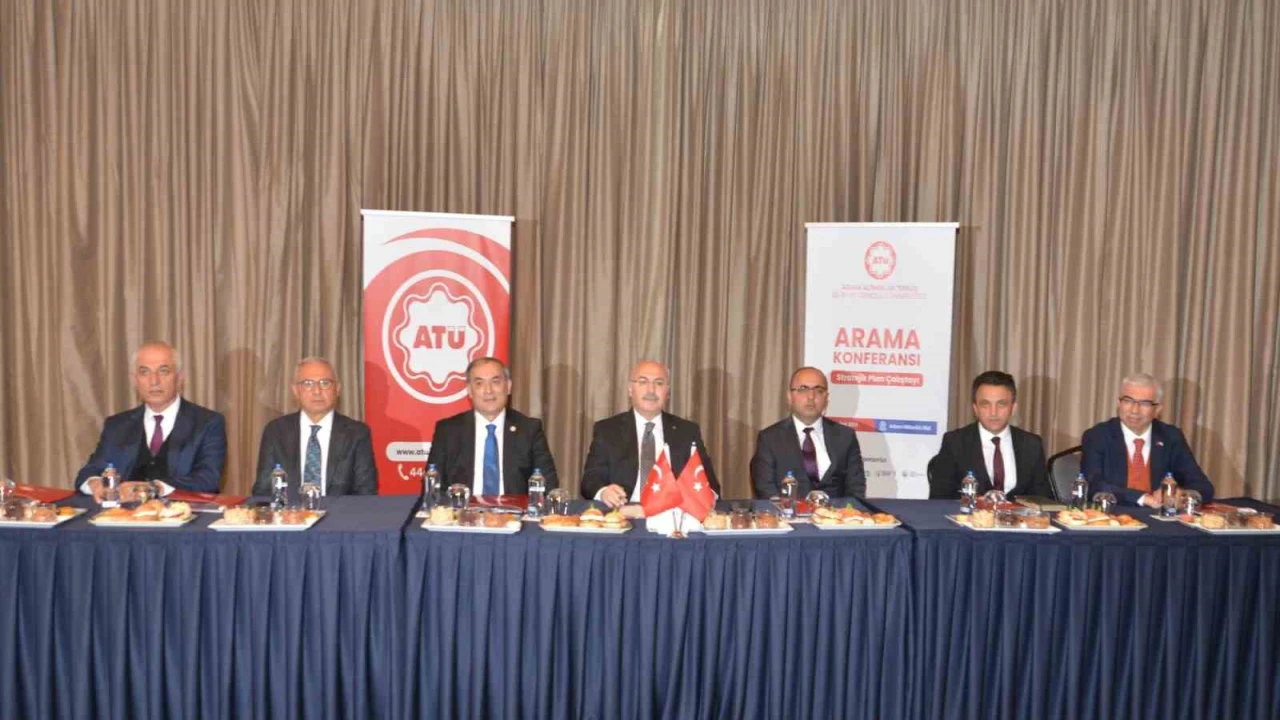 ADANA ALPARSLAN TÜRKEŞ BİLİM VE TEKNOLOJİ ÜNİVERSİTESİ (ATÜ) ARAMA KONFERANSI STRATEJİK PLAN ÇALIŞTAYI, KAMU KURUMLARININ VE İŞ DÜNYASININ TEMSİLCİLERİNİN GENİŞ KATILIMI İLE GERÇEKLEŞTİRİLDİ.