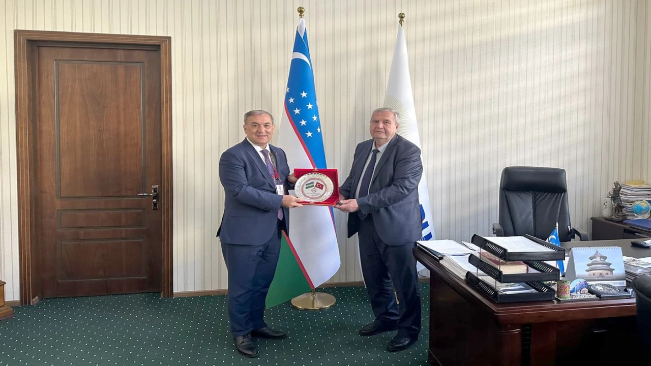 ADANA ALPARSLAN TÜRKEŞ BİLİM VE TEKNOLOJİ ÜNİVERSİTESİ (ATÜ) REKTÖRÜ PROF. DR. ADNAN SÖZEN, ÖZBEKİSTAN'IN BAŞKENTİ TAŞKENT'TEKİ CHİRCHİQ DEVLET PEDAGOJİ ÜNİVERSİTESİ REKTÖRÜ PROF. DR. MUXAMEDOV GAFURDJAN'I MAKAMINDA ZİYARET ETTİ.