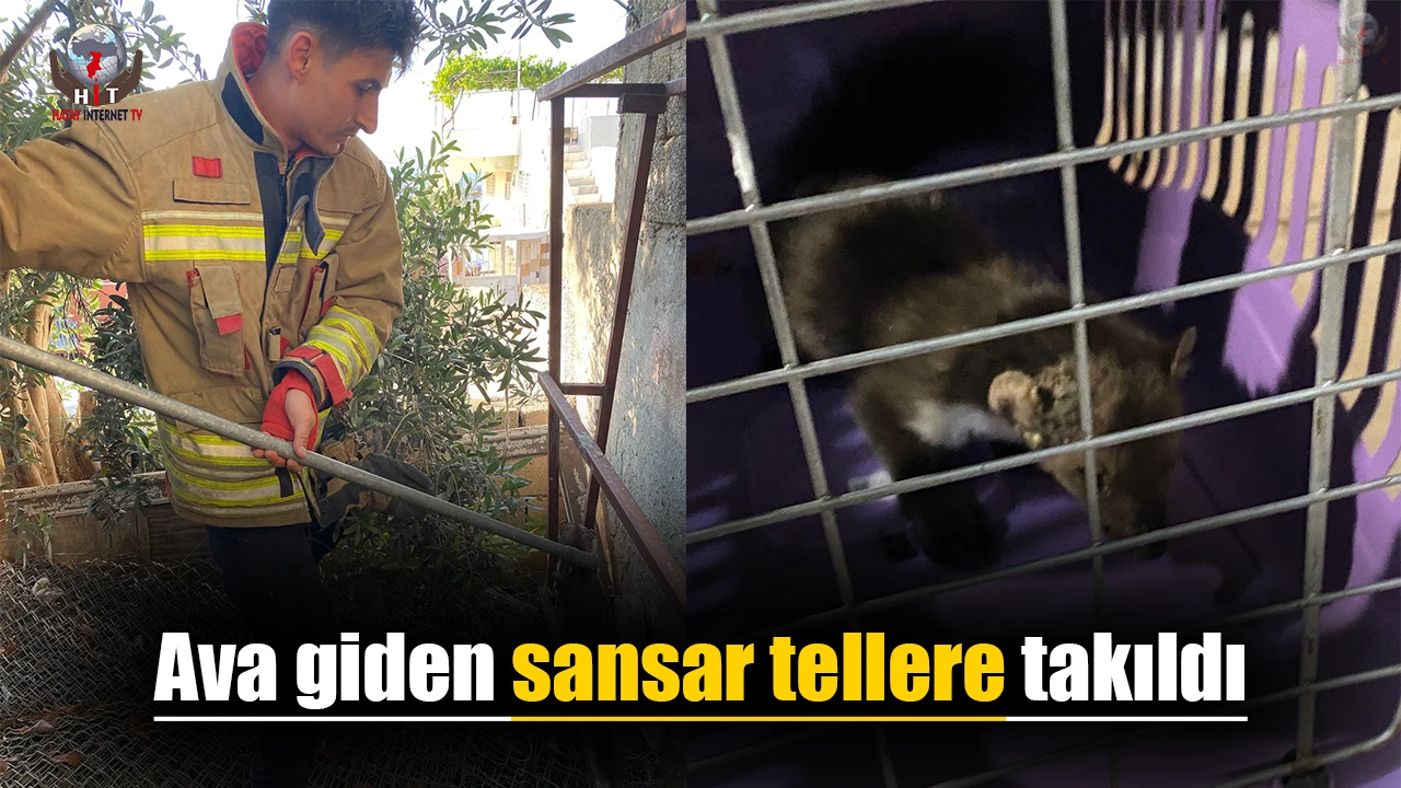 HATAY’IN İSKENDERUN İLÇESİN BİR EVİN BAHÇESİNDE AVA GİDEN SANSAR TELLERE TAKILDI.