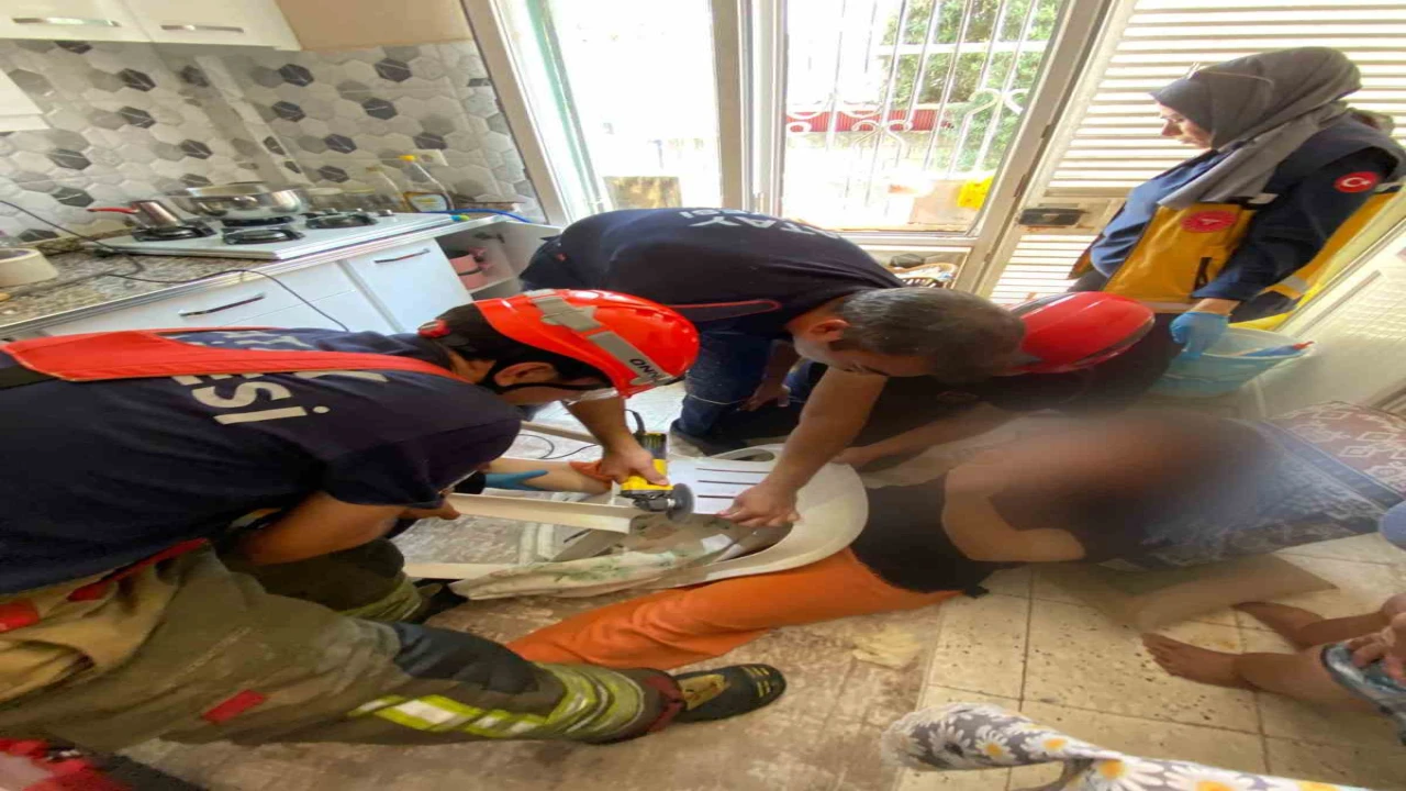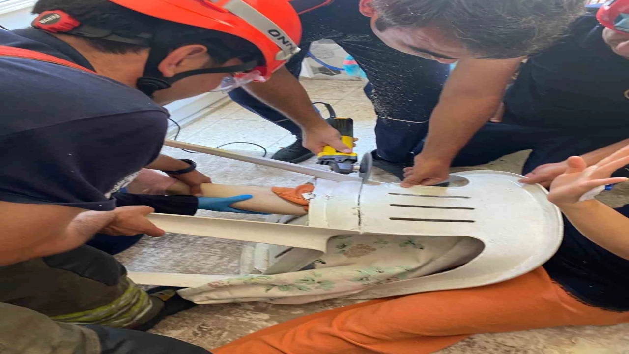 HATAY (İHA) - Hatay'da ayağını plastik sandalyeye sıkıştıran vatandaşın imdadına itfaiye yetişti.