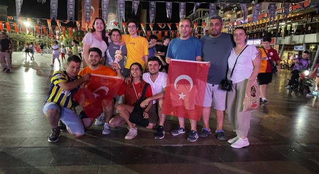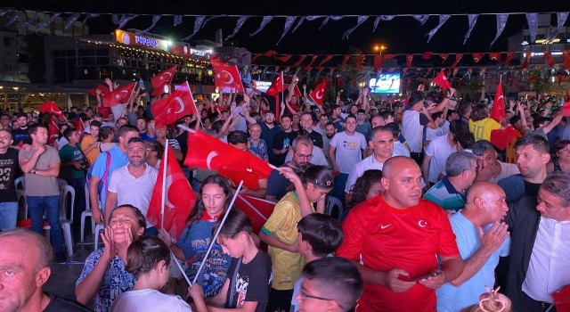 A Milli Futbol Takımı, 2024 Avrupa Futbol Şampiyonası (EURO 2024) son 16 turunda rakibi Avusturya’yı 2-1 yenerek çeyrek finale yükselirken, milli maçı Kent Meydanı’nda izleyen binlerce Aydınlı ise çeyrek finali coşkuyla kutladı. Ellerine aldıkları Türk bayraklarıyla galibiyeti kutlayan vatandaşlar, sokak ve caddeleri kırmızı-beyaza boyadı.