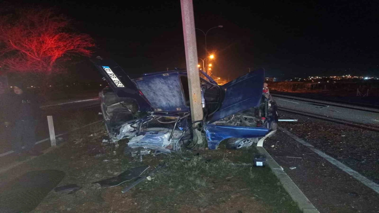 Aydınlatma direğine çarpan Tofaş hurdaya döndü: 2 yaralı