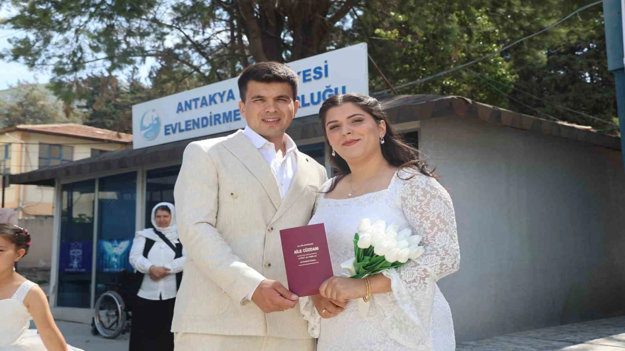 Hatay’da evlenmek için aylar öncesinden ’05.05.2025’ tarihini tercih eden çiftler, nikah dairelerinde yoğunluk oluşturdular.