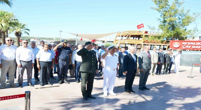 Meydandaki törenlere; Ayvalık Kaymakamı Hasan Yaman, Ayvalık Belediye Başkanı Mesut Ergin, Ayvalık Liman Başkan Fırat Çengel, daire amirleri, belediye meclis üyeleri, mahalle muhtarları, siyasi partilerin, sivil toplum örgütlerinin temsilcileri, gaziler ve vatandaşlar katıldı.