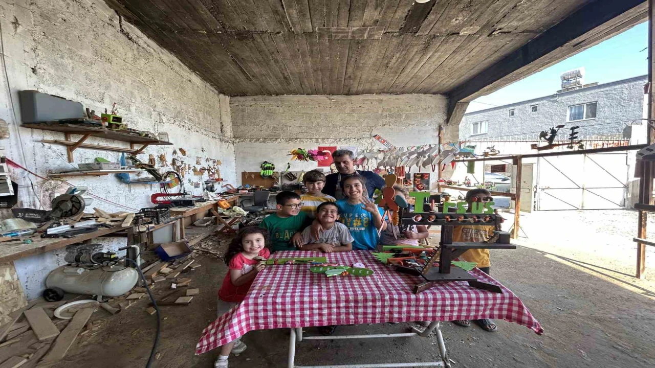 Mersin’in Tarsus ilçesinde baba ile oğlu ahşabı oyuncağa dönüştürerek, hem zararsız ürünler üretiyor hem de hayallerini gerçekleştiriyor.