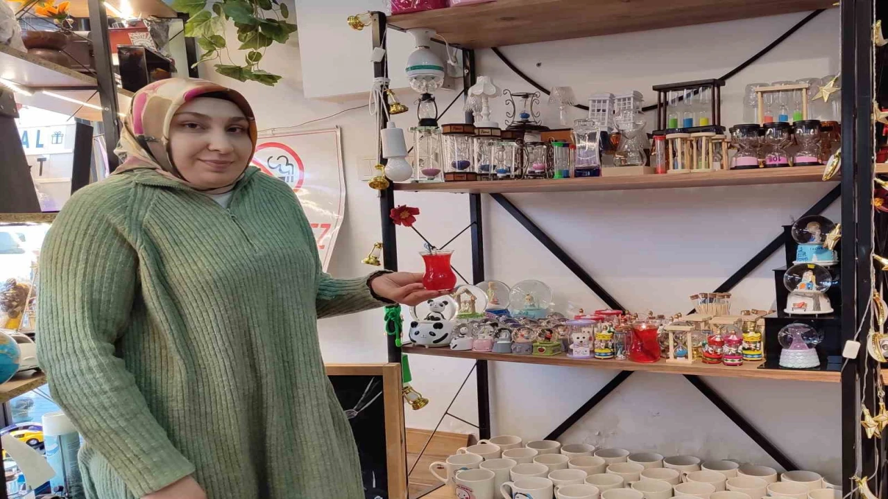 KAHRAMANMARAŞ'TA HEDİYELİK ÜRÜNLER SATAN FEYZA ÇAYIR'IN, BABASINA ŞAKA AMAÇLI YAPTIĞI ÇAY ŞEKLİNDEKİ MUM GEÇİM KAYNAĞI OLDU.