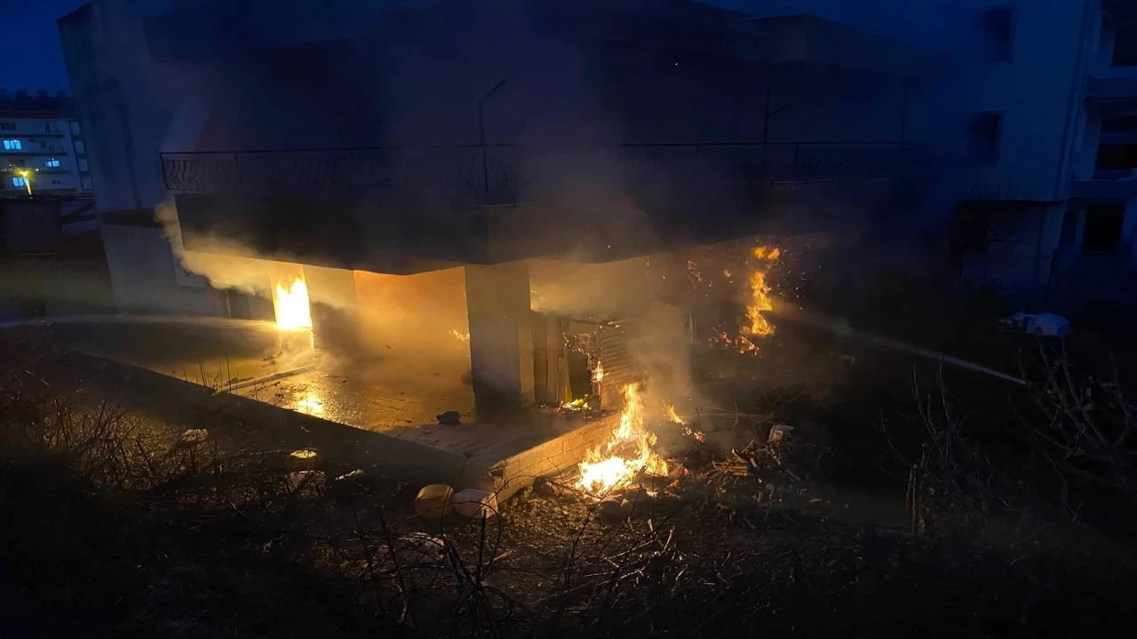 Yangında 2 katlı evin alt katı tamamen yanarak kullanılamaz hale geldi.