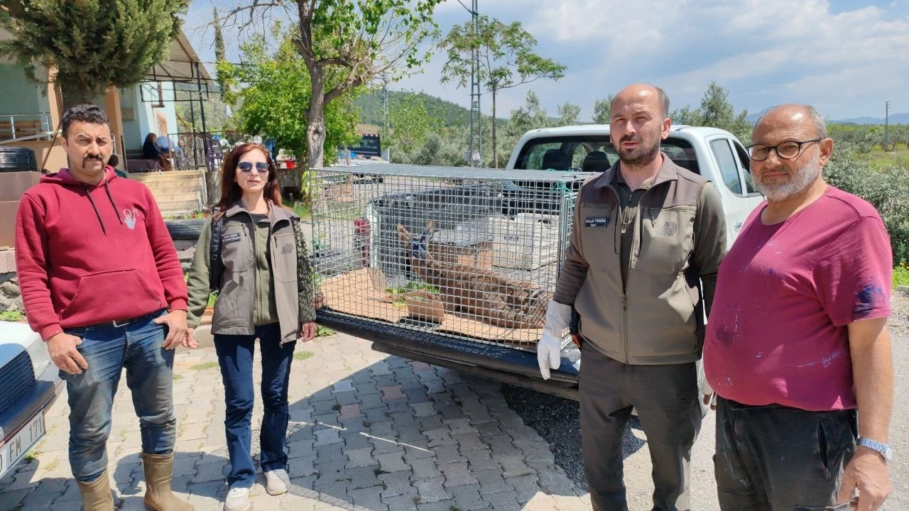Bahçesinde bulduğu yaralı yavru karacayı ekiplere teslim etti