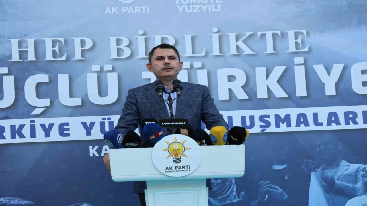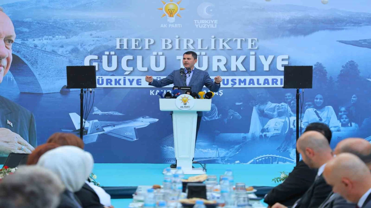 Kahramanmaraş’ta sivil toplum kuruluşu temsilcileriyle bir araya gelen Çevre, Şehircilik ve İklim Değişikliği Bakanı Murat Kurum, 6 Şubat depremleri sonrası yürütülen çalışmaları ve yatırımları anlattı. Konuşmasında Kahramanmaraş’ın her karış toprağının imanla mücadele eden kahramanların hatırasını taşıdığını vurgulayan Kurum, "Bugün de aynı ruhla Cumhurbaşkanımız Recep Tayyip Erdoğan’ın yanında dimdik duran ve Türkiye Yüzyılı vizyonuna gönülden sahip çıkan yiğit insanların şehri olmuştur. Emin olun bunu Kahramanmaraş’ın her sokağında, her mahallesinde hissedebilirsiniz. İşte bu yüzden siz kıymetli Maraşlı kardeşlerimizle kucaklaşmanın eşsiz mutluluğunu yaşıyoruz ve sizlerle gurur duyuyoruz" dedi.