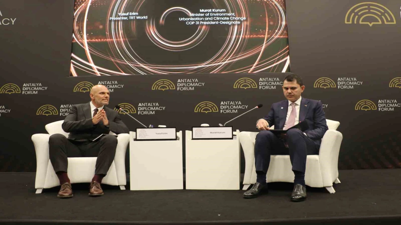 Antalya Diplomasi Forumu 2026 kapsamında düzenlenen sohbet paneline katılan Çevre, Şehircilik ve İklim Değişikliği Bakanı Murat Kurum, yaptığı konuşmada COP31 sürecinin uygulama ve icra odaklı bir yaklaşım olduğunu vurgulayarak, Türkiye’nin iklim değişikliğiyle mücadele, afet yönetimi ve yeniden inşa konularındaki tecrübelerini uluslararası alana taşıdığını ifade etti. 6 Şubat depremleri sonrası yürütülen konut seferberliği, Sıfır Atık Projesi ve çevre yatırımlarına da değinen Kurum, artan küresel krizler karşısında ülkelerin kendi kendine yetebilir olması gerektiğini belirterek, Türkiye’nin savunma, enerji ve gıda alanlarında güçlü ve bağımsız bir ülke olma hedefini vurguladı.